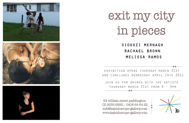 exit my city in pieces, an exhibition with Melissa Ramos and Rachael Brown.