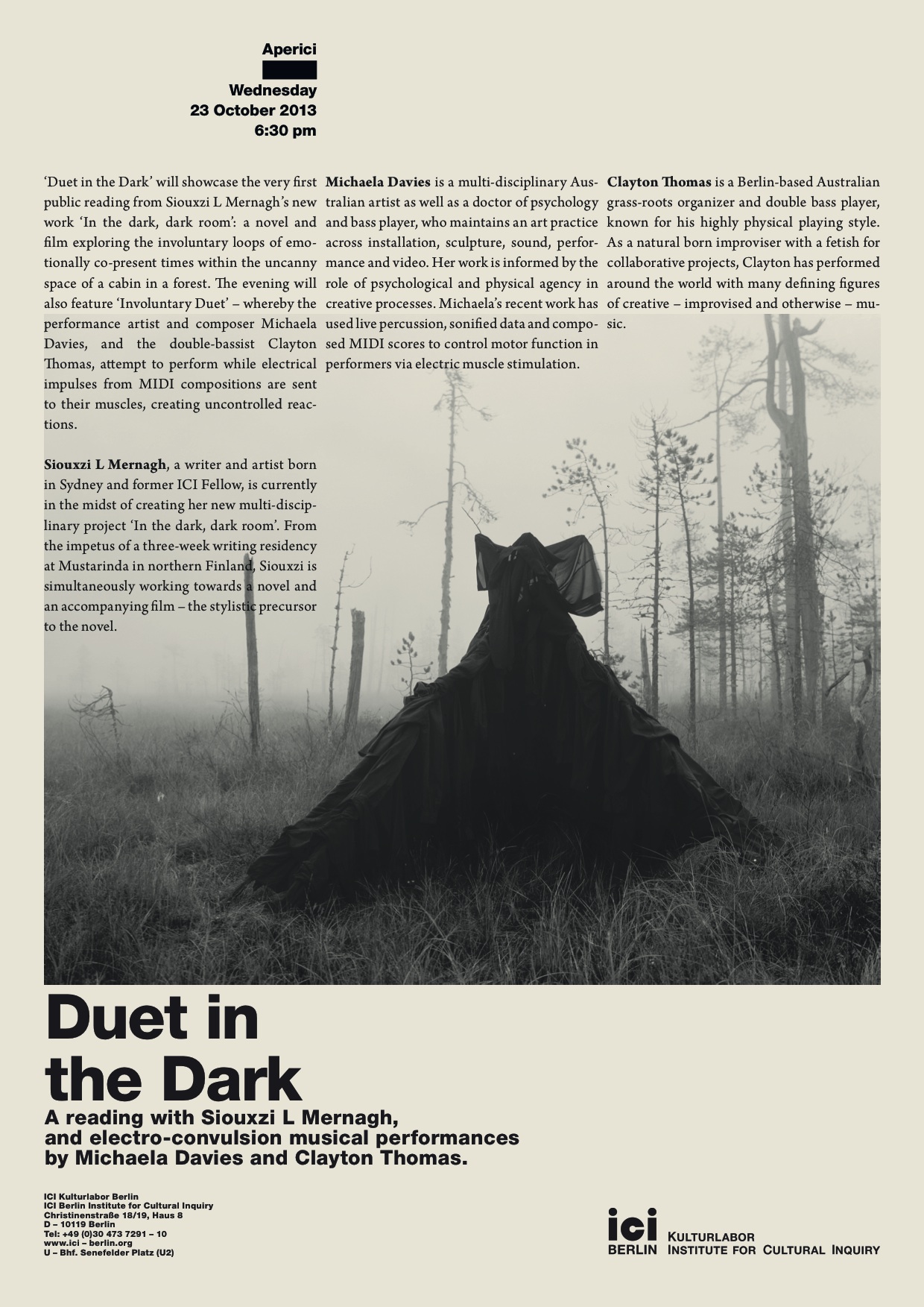 First Public Reading: ‘In the dark, dark room’, Institute for Cultural Inquiry, Berlin, Oct. 23, 2013