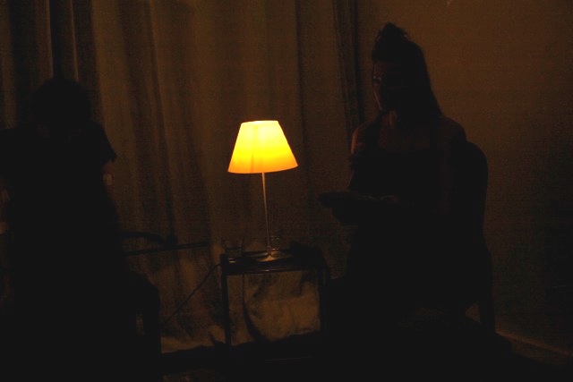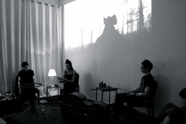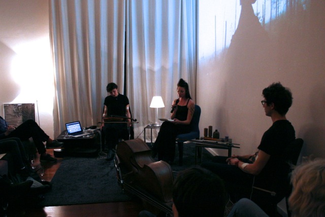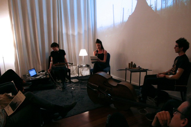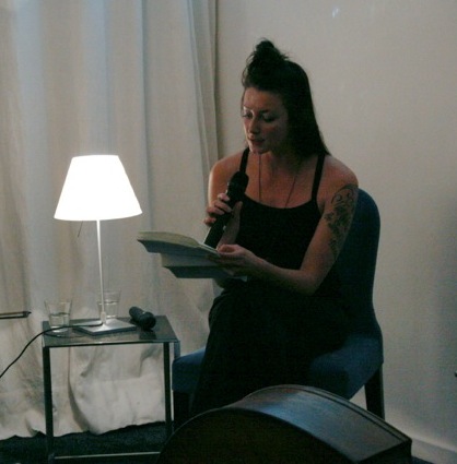 Here are some images taken by Claudia Peppel from the first public reading on Wednesday October 23 from my new work ‘In the dark, dark, room’. Also performing on the evening were Michaela Davies and Clayton Thomas, with an electro-convulsive musical work titled ‘Involuntary Duet.’ The projected image is by Riitta Päiväläinen.